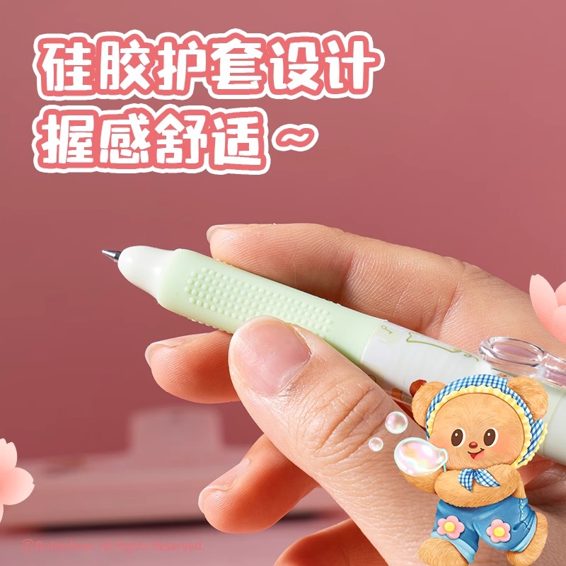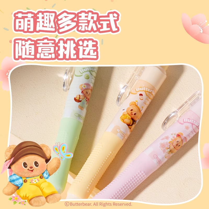得力黄油小熊联名中性笔学生专用口袋笔春日系列按动笔0.5子弹头中性笔可爱萌口袋笔高颜值黑笔2025超火笔