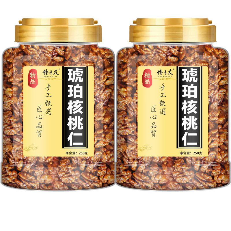 蜂蜜琥珀核桃仁新货500g罐装芝麻熟核桃仁纸皮核桃坚果健康好吃