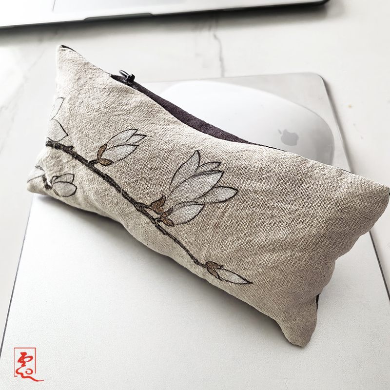 纯手绘荷花玉兰鼠标手腕垫解乏美甲枕释压含芯禅意棉麻中医腕垫