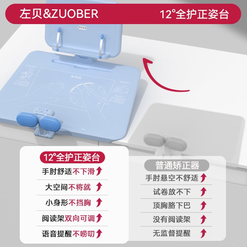 左贝12度正姿台儿童坐姿矫正器写字防近视支架护眼灯小学生写作业学习姿势纠正器书写防低头驼背大桌面款神器