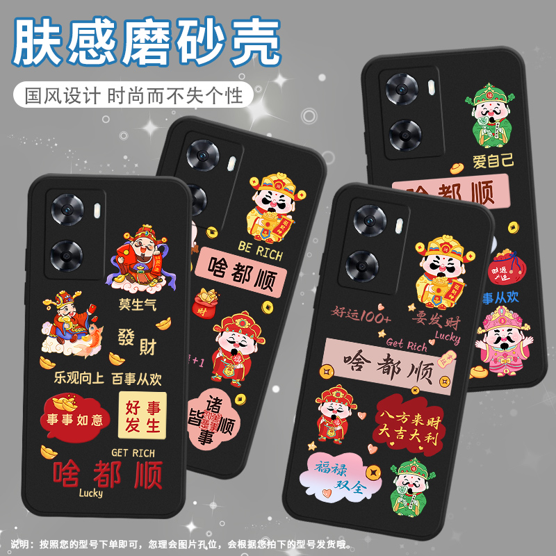 适用OPPOA76手机壳A77保护壳A77s全包边2022款国外版磨砂壳CPH2375啥都顺铜钱顺财神百事从欢个性乐观向上