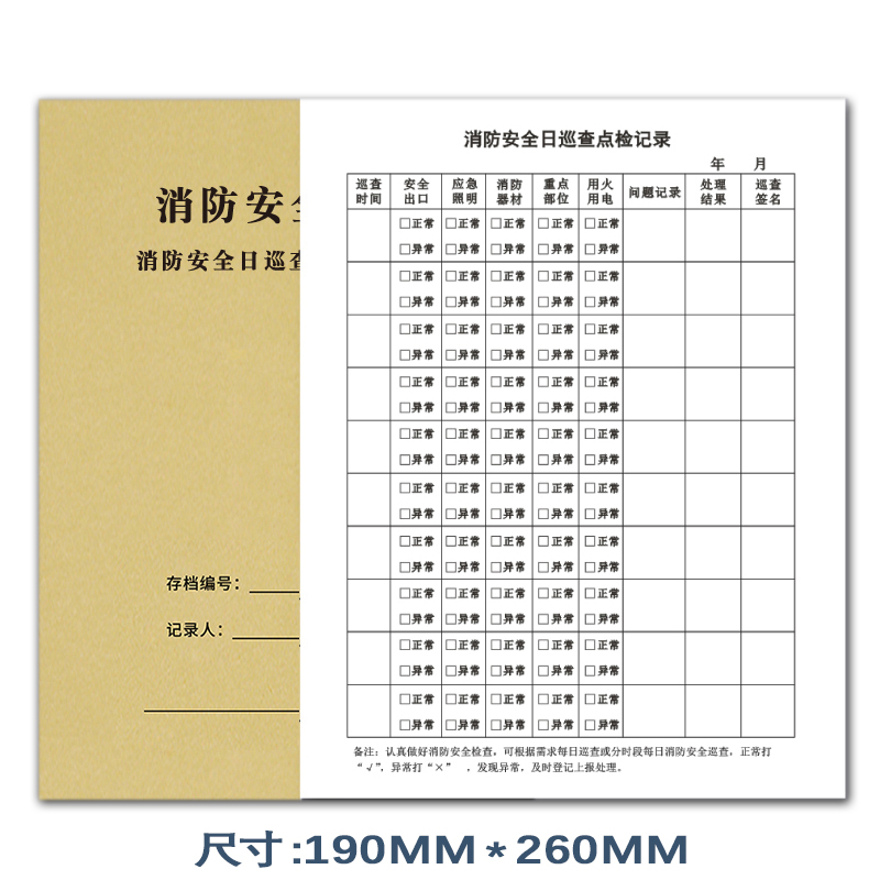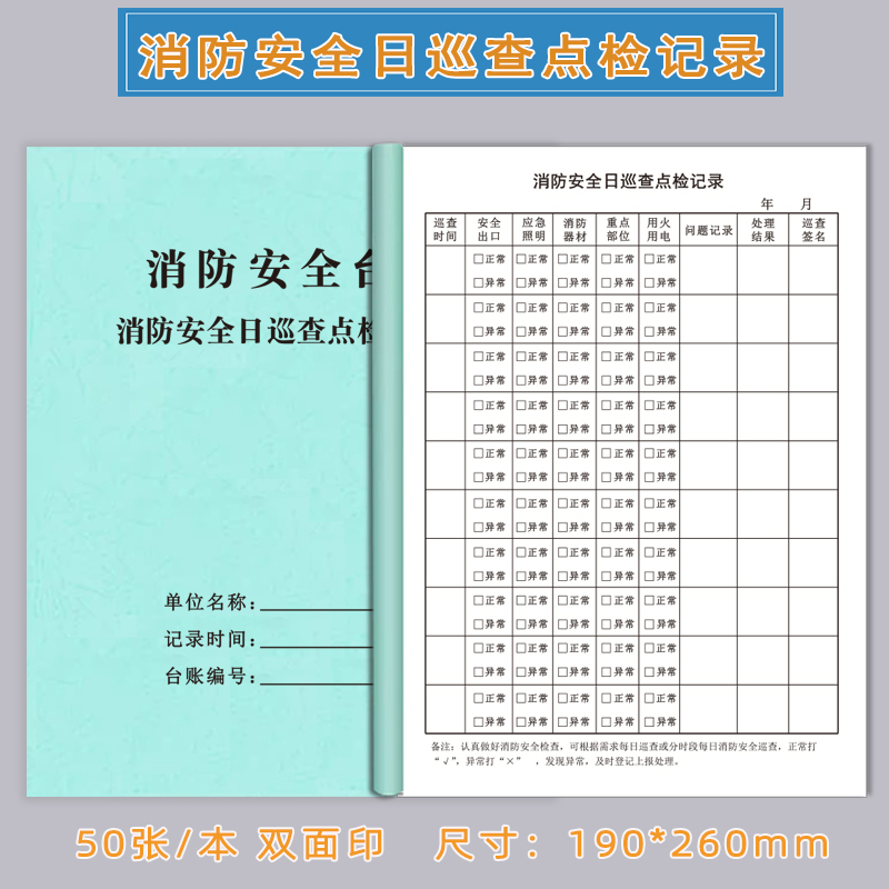 消防安全日巡查点检记录薄消防台账每日防火巡查防火检查记录簿消防管理台账消防培训消防设施每日巡视记录本