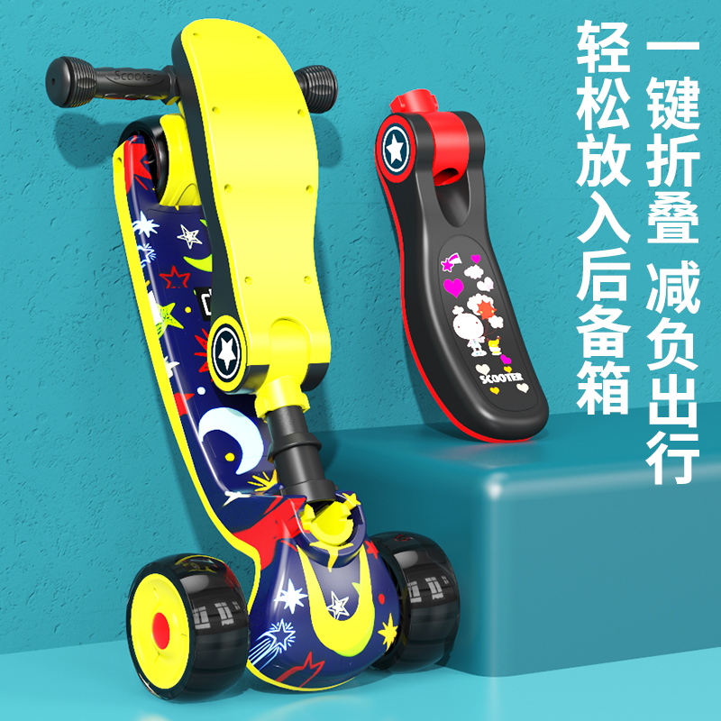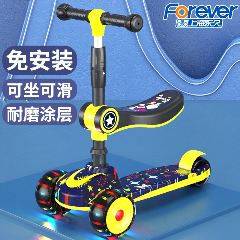 上海永久儿童滑板车1到3就6岁可坐男女孩可折叠男女孩宝宝滑滑车