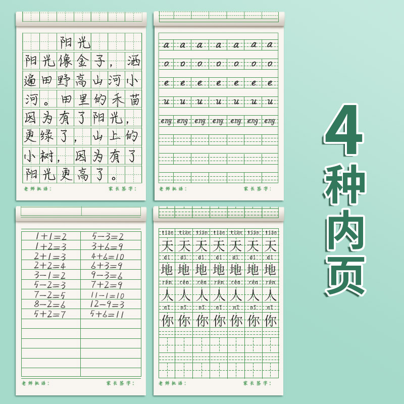 思进拼音本作业本小学生专用一二年级标准款数学本牛皮纸生字田字格前班幼儿园大班写字上翻汉语拼音语文本子