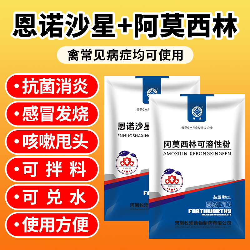 兽用恩诺沙星粉阿莫西林鸡药鸭鹅开口药拉稀大全呼吸感冒特别养殖