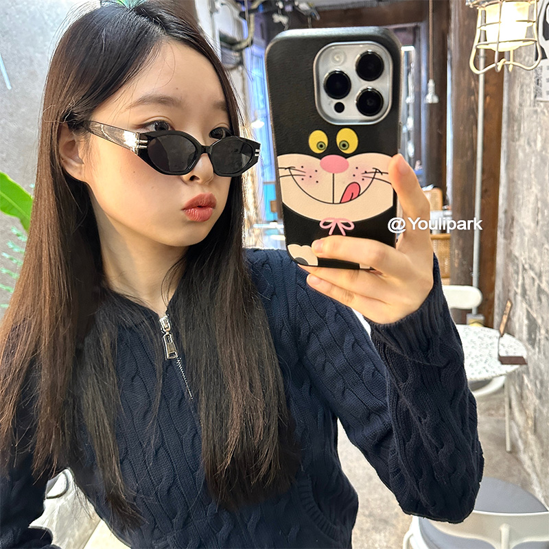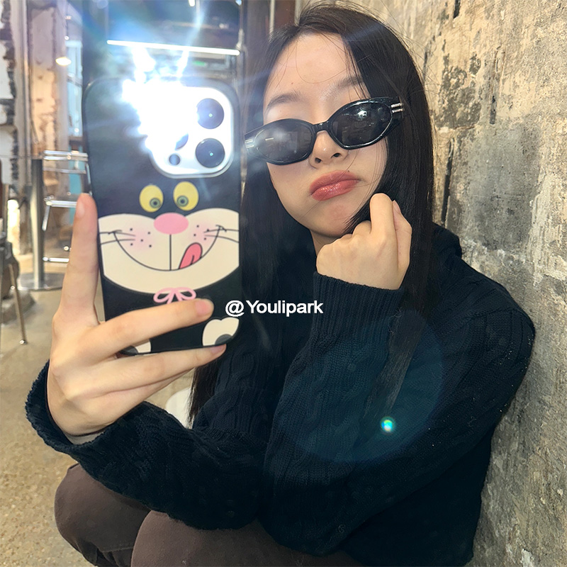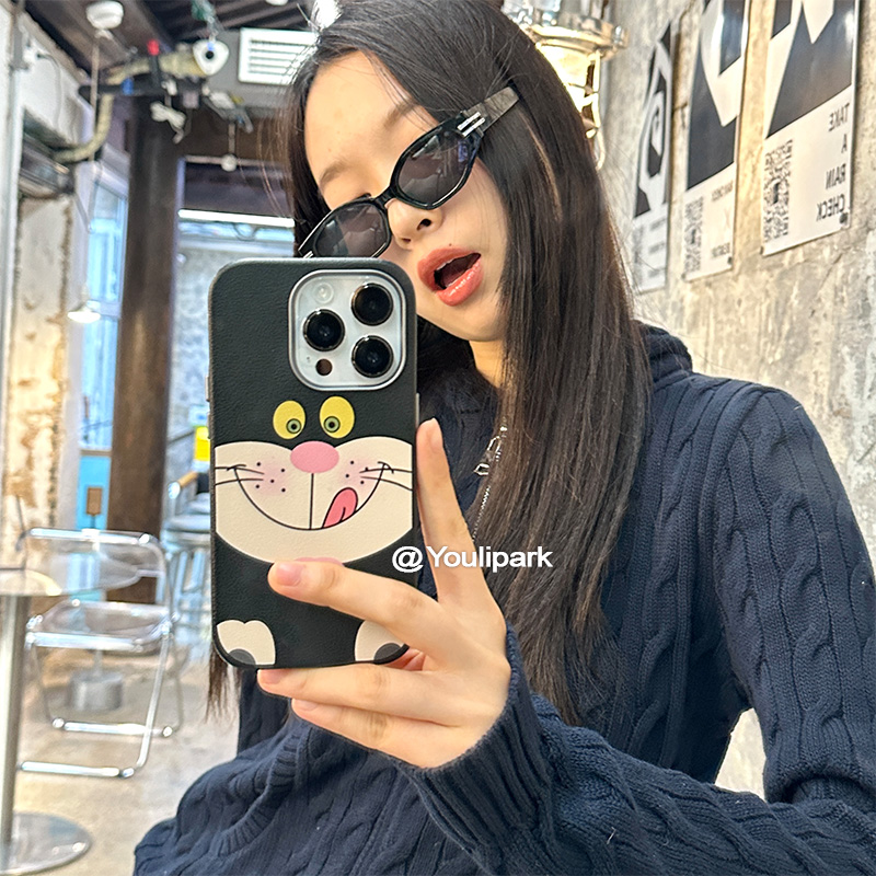由里公园ins甜酷少女可爱吐舌头大脸猫15适用16pro苹果16ProMax手机壳iPhone16全包12新款14Promax保护套13软