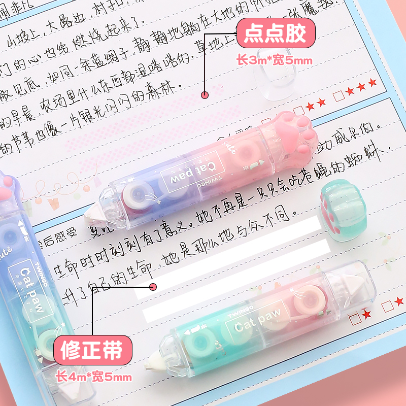 点点胶修正带二合一猫爪静音渐变双头手账工具粘贴胶带高颜值少女心ins改正带学生用改错带双面胶涂改带
