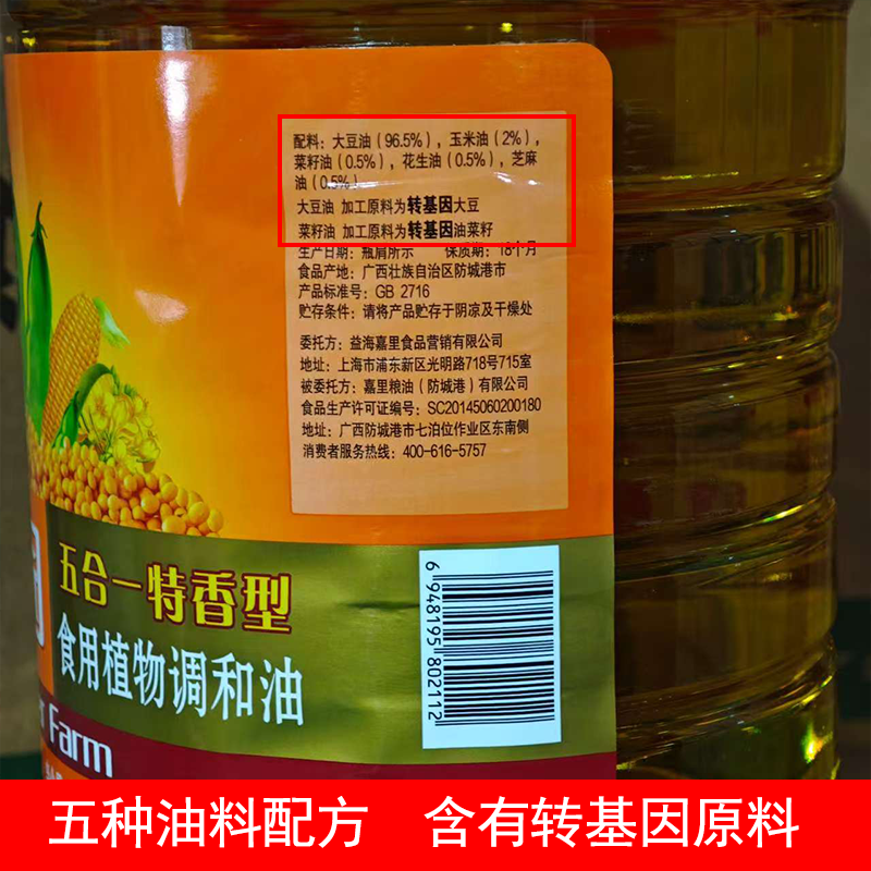 工厂直销香满园五合一特香植物调和油5L装家庭商用炒菜烹饪食用油