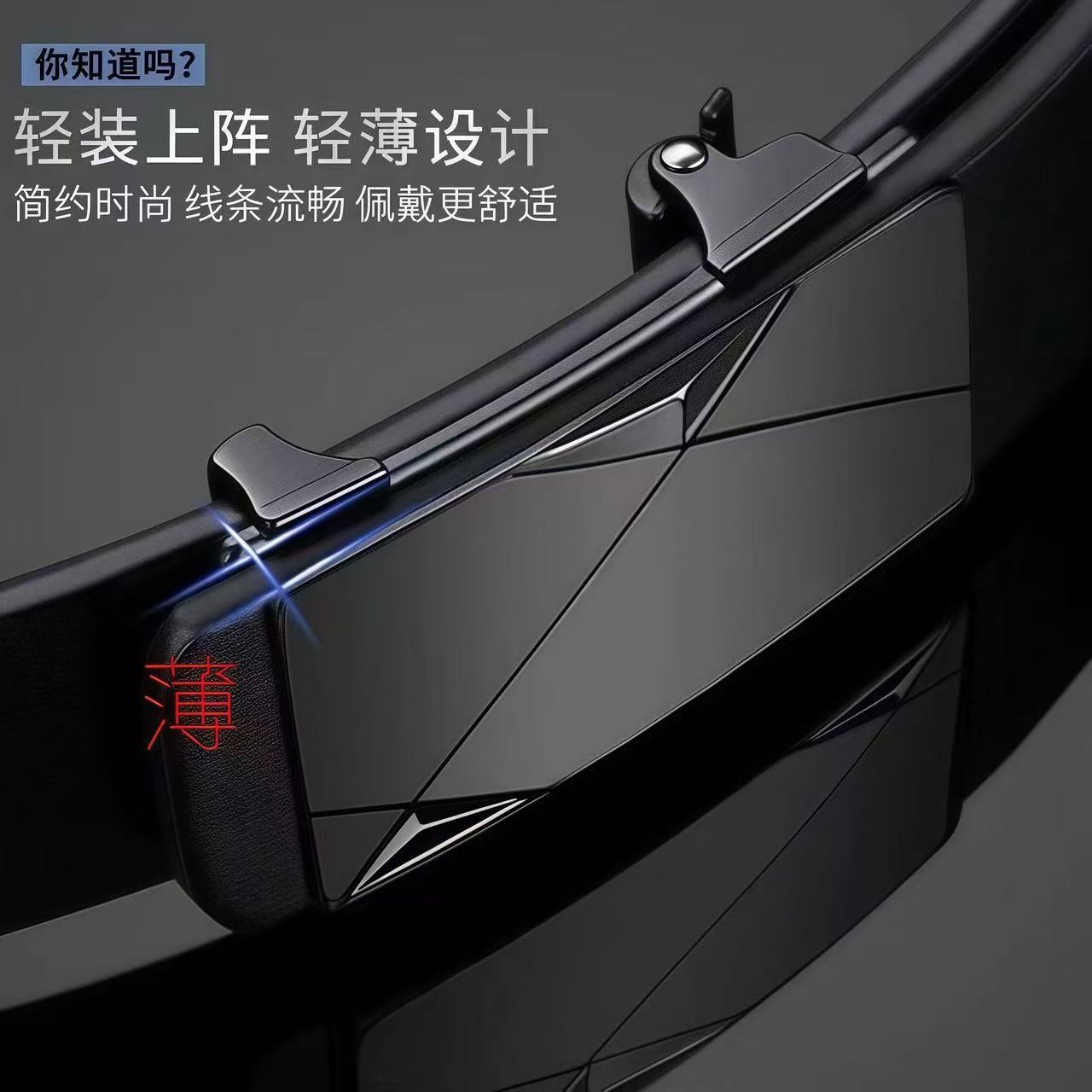 无牙自动扣腰带时尚百搭潮男士裤腰带人裤休闲皮带中国风卡扣轻薄