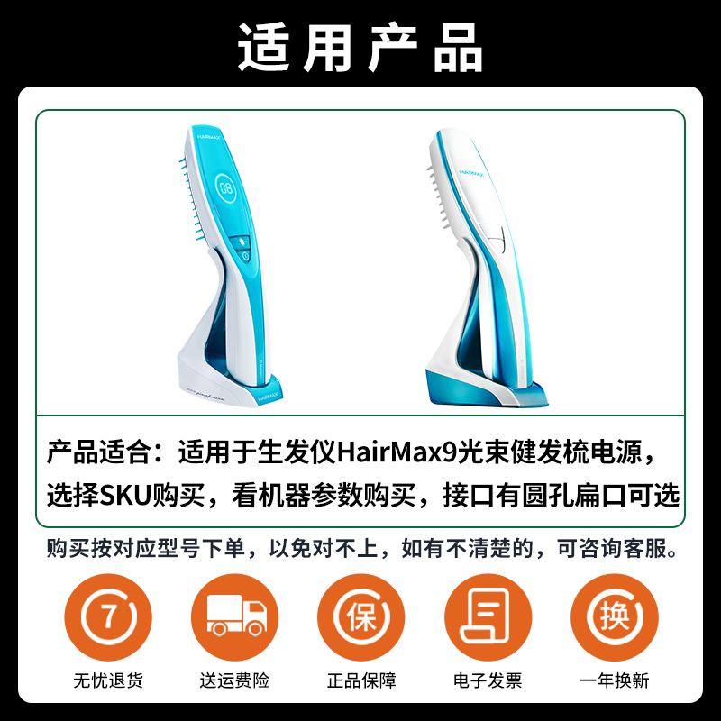 适用于生发仪HairMax9充电器线小圆孔光束健发梳Ultima 9 Prima7/12电源适配器接口3.5