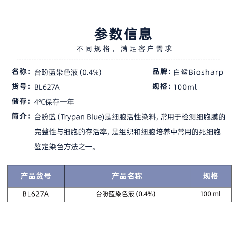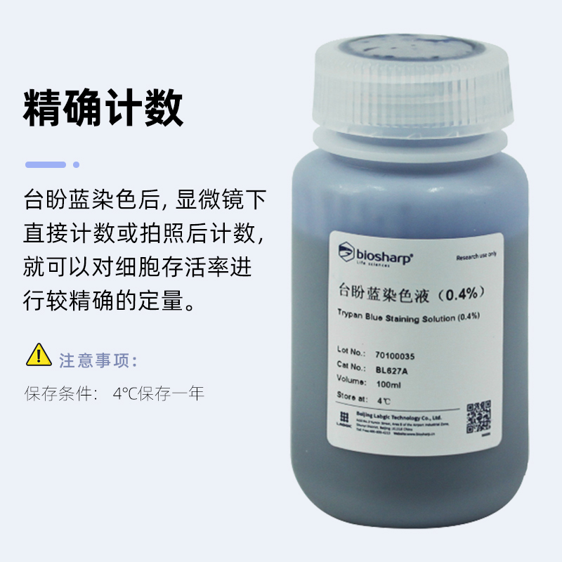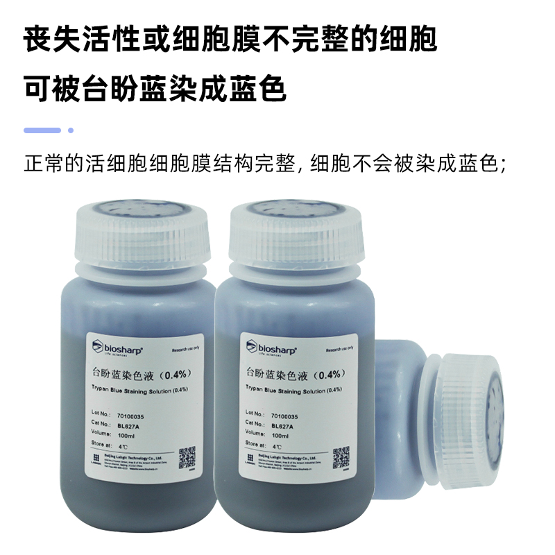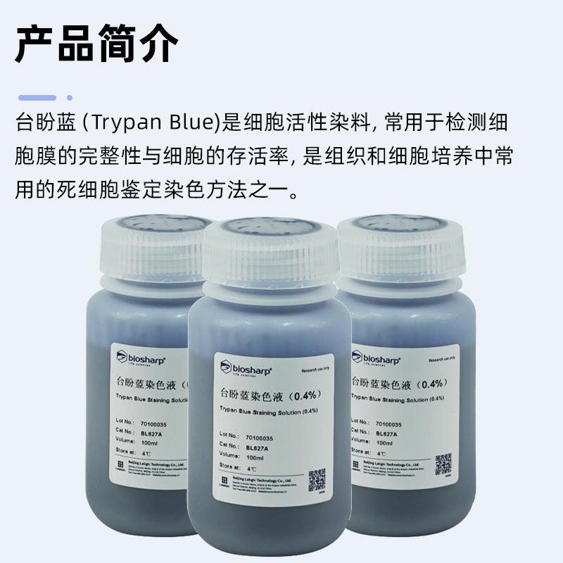 Biosharp BL627A 台盼蓝染色液(0.4%) 细胞活性染料 检测细胞膜的完整性与细胞的存活率 100ml
