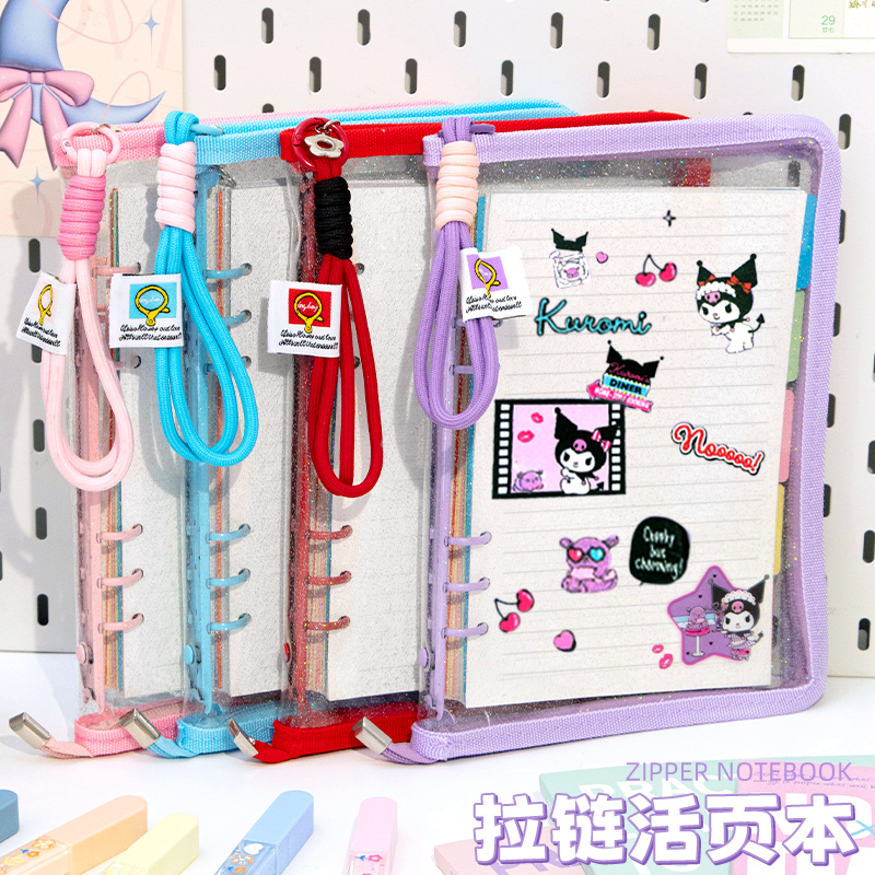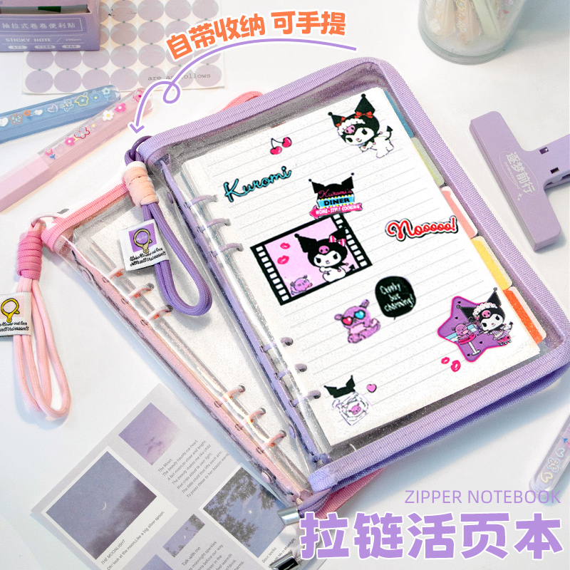 加厚100g纸张!拉链活页笔记本A5本子可拆卸透明外壳高颜值胶套日记本加厚大容量初中高中生专用可收纳多功能
