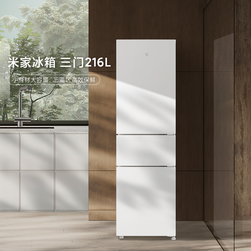 小米米家216L三门三开门冷藏冷冻家用租房宿舍省电小冰箱