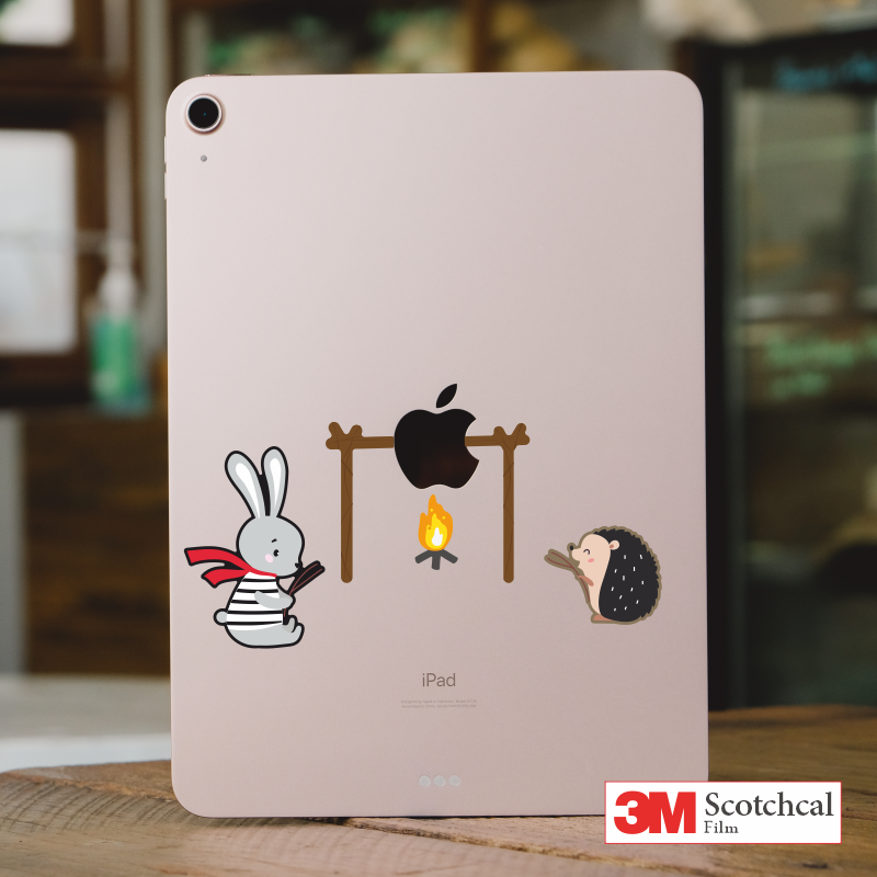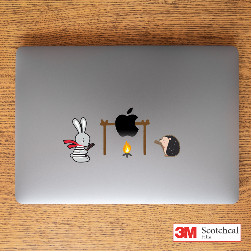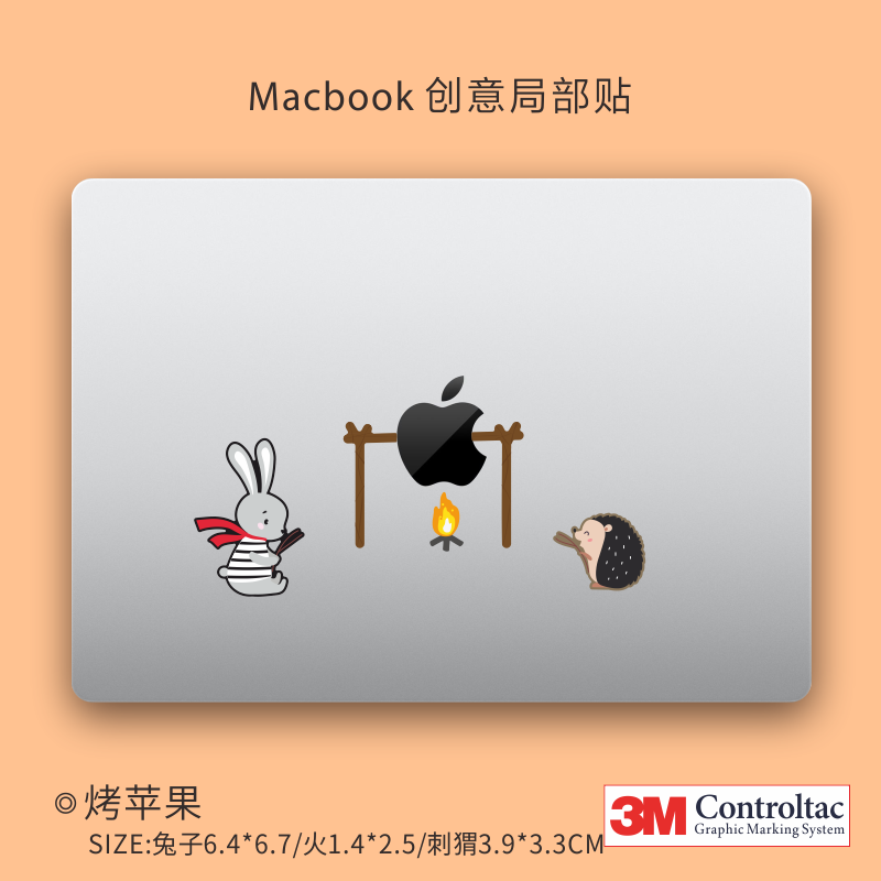 艺贴进口铸造级带导气槽易定位技术 兔子和刺猬烤火 适用苹果macbook外壳创意贴纸挡划痕遮瑕个性装饰美容贴