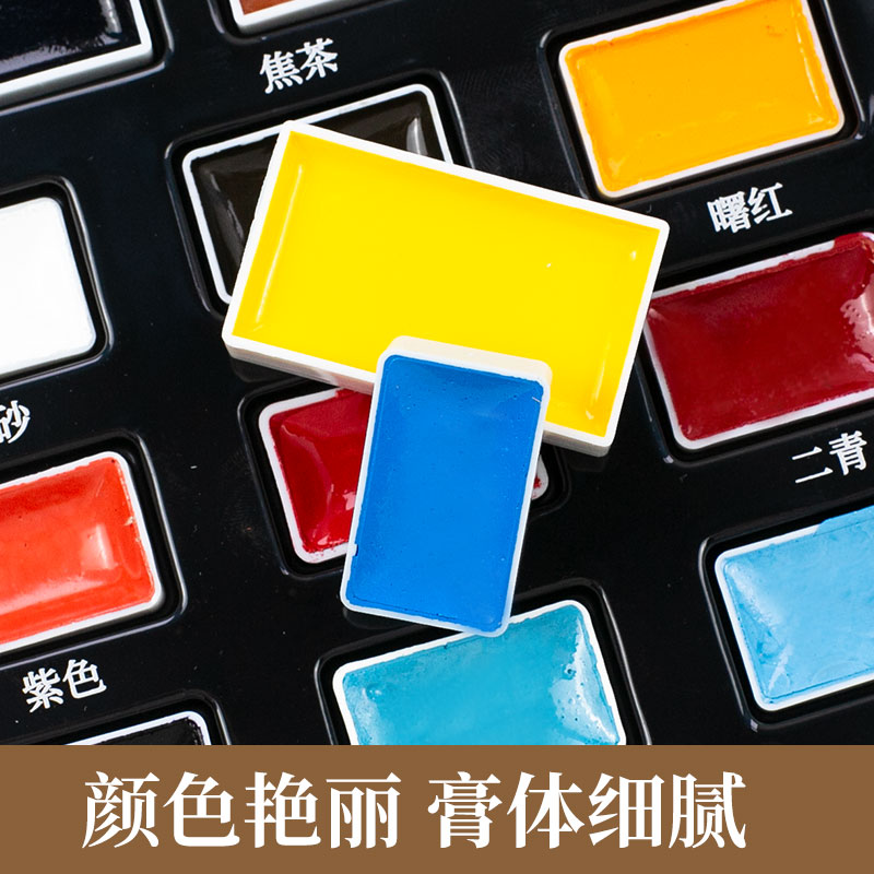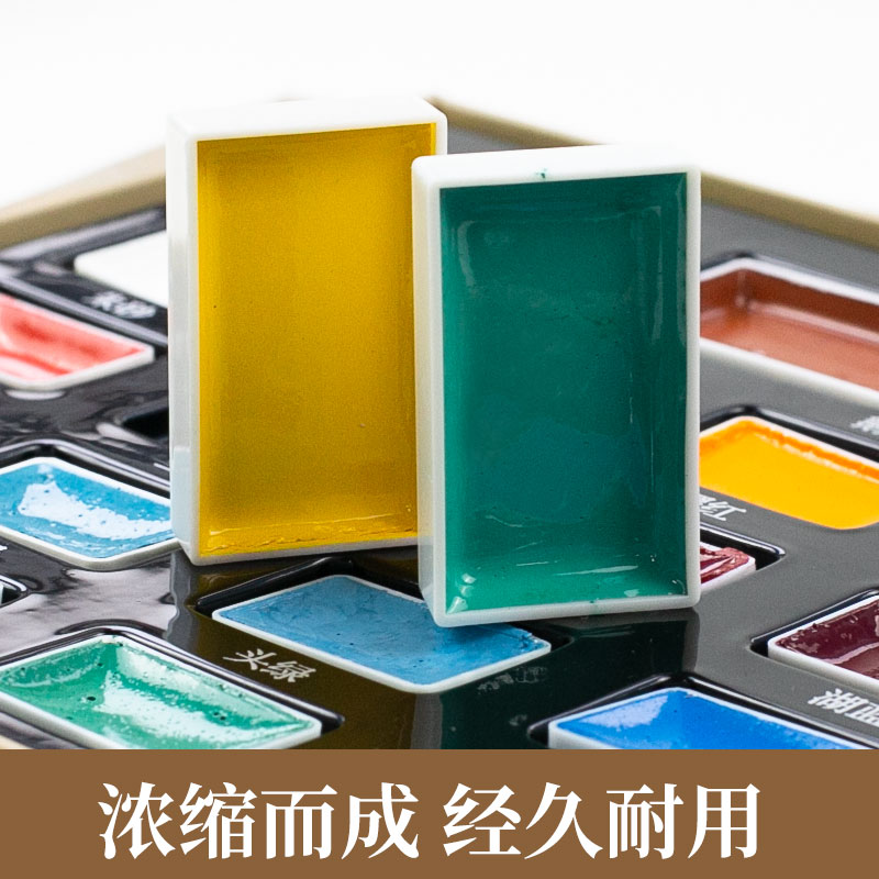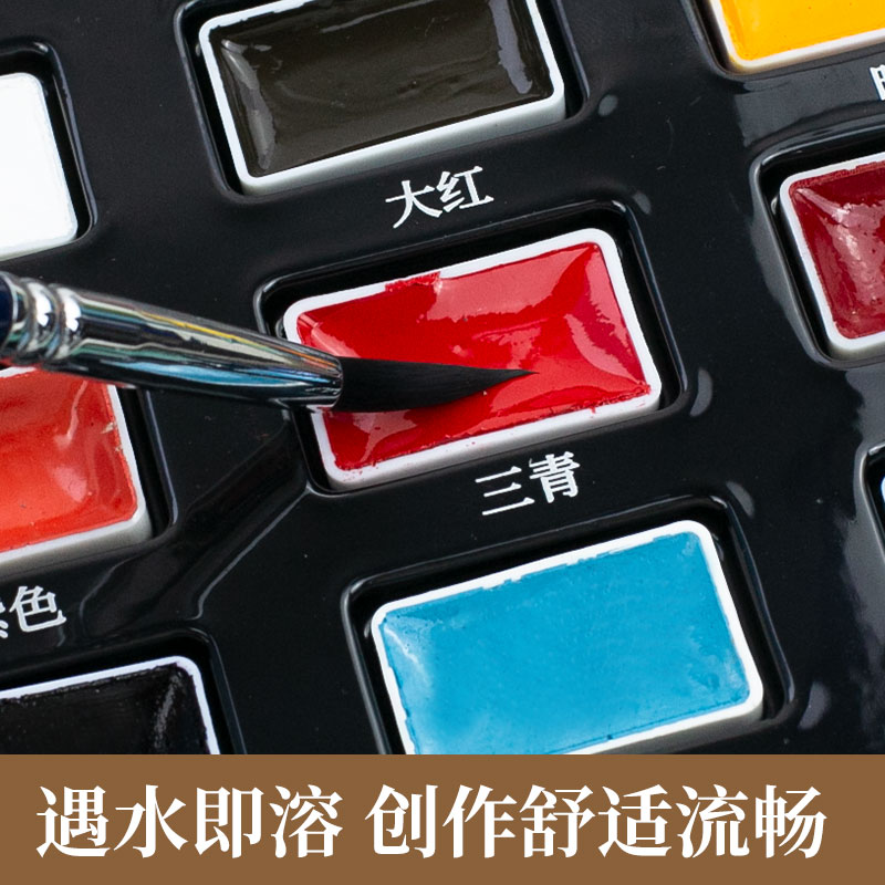 鲁本斯中国画固体汉系列升级版24色国画颜料初学者套装用品工具固体国画钛白毛笔宣纸水彩水墨画矿物学生专用