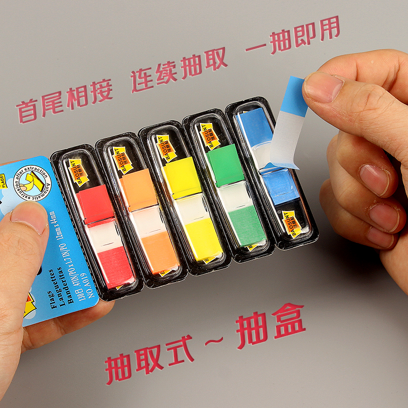 指示签名索引标签贴便条纸便签本塑料彩色荧光膜防水半透明抽取式N次贴便利贴粘性佳不伤纸备忘提示资料标签