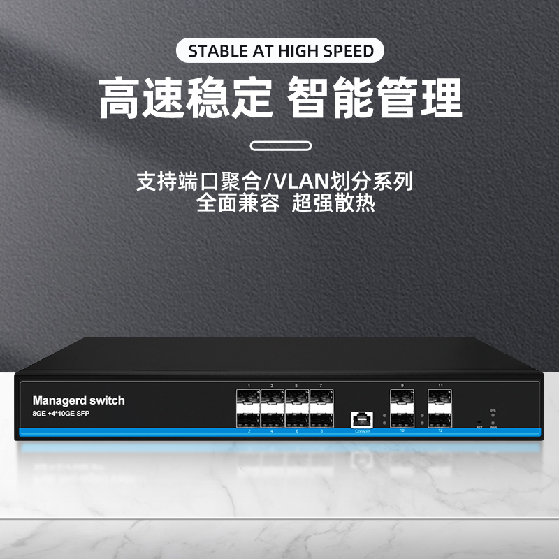 万兆交换机12口管理型10g万兆4光口+8电光口网管链路聚合组环网POE供电以太网络交换机工程监控专用