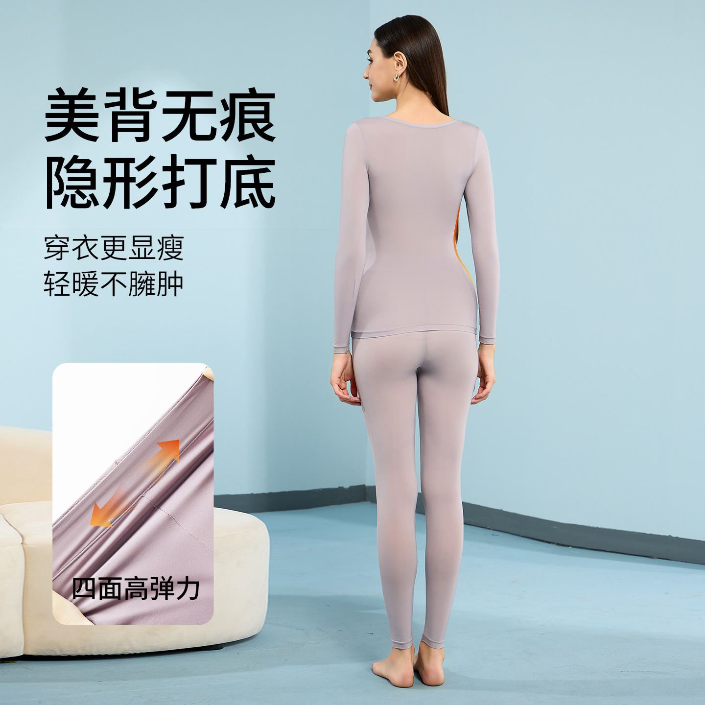 婷美秋衣秋裤蓄热保暖套装女修身显瘦隐形美肤秋冬无痕裸感打底衫