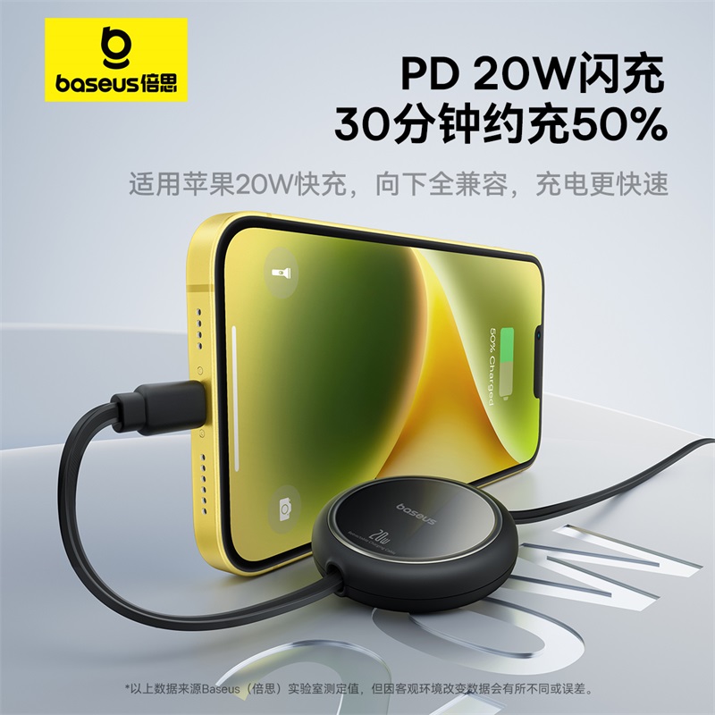 倍思适用iPhone14充电线伸缩苹果13数据线PD20W快充线12Promax手机ipad平板plus闪充typec转lightning车载用