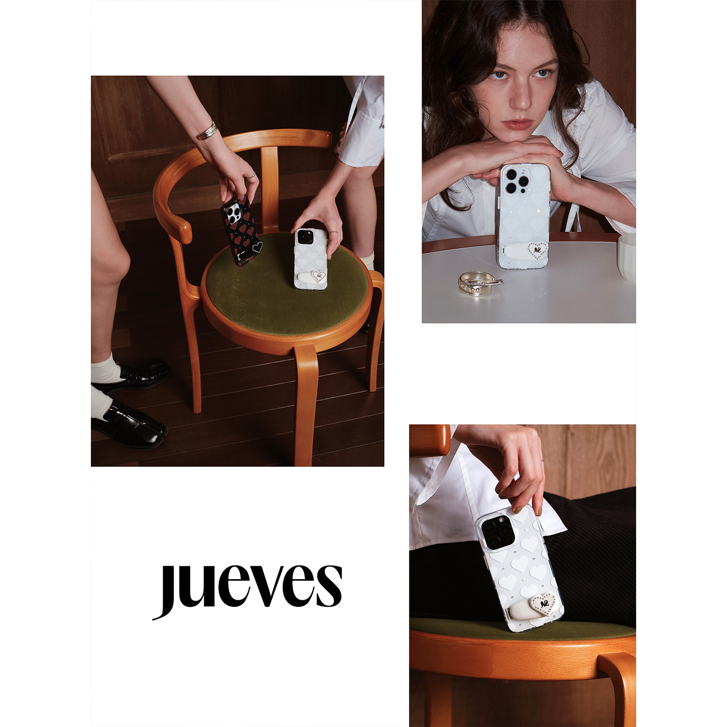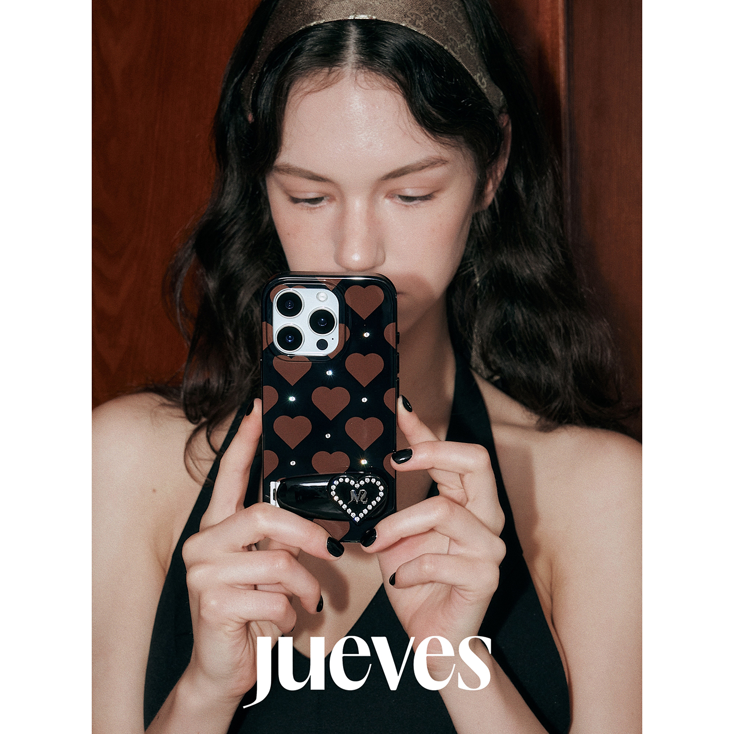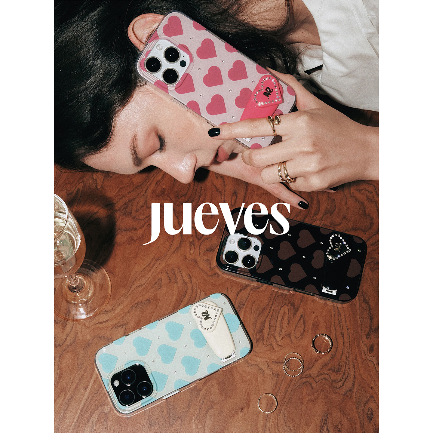 JUEVES星期四“闪烁的心”爱心钻石发夹壳iphone16pro苹果17桌面折叠金属支架16pm华为mate70pro适用p70pro