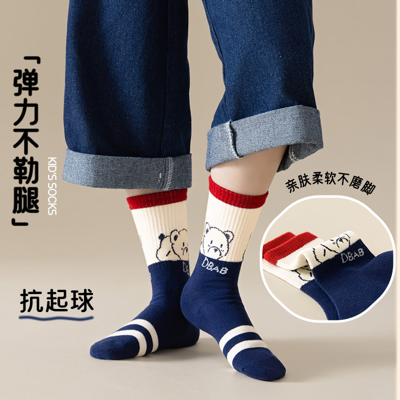 秋冬款100%儿童袜子a类男童秋季女孩抑菌抑臭不易起球A中筒袜棉袜