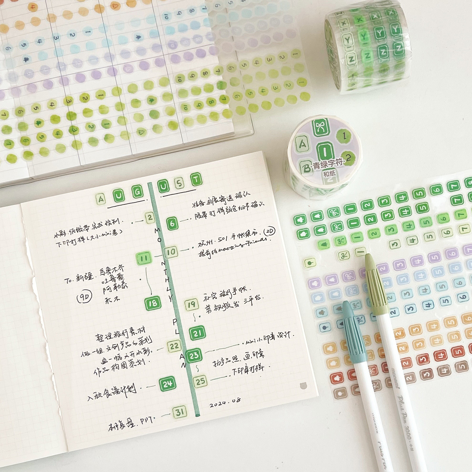 有熊字符模切胶带 字母数字手帐基础贴纸卷 蓝紫咖啡青绿手账拼贴
