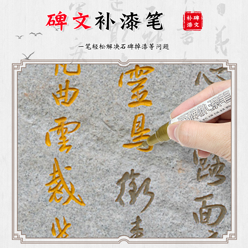 碑文补漆笔清明节石碑专用软头不掉色描字笔红色金色油漆笔补色笔