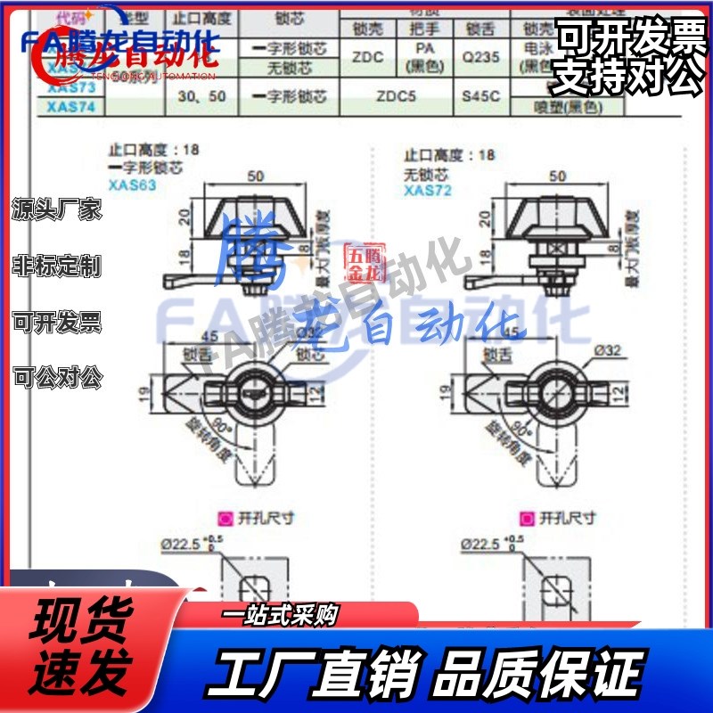 XAS63/XAS7o2蝶形圆柱锁 50系列一字锁芯/工业框体配件