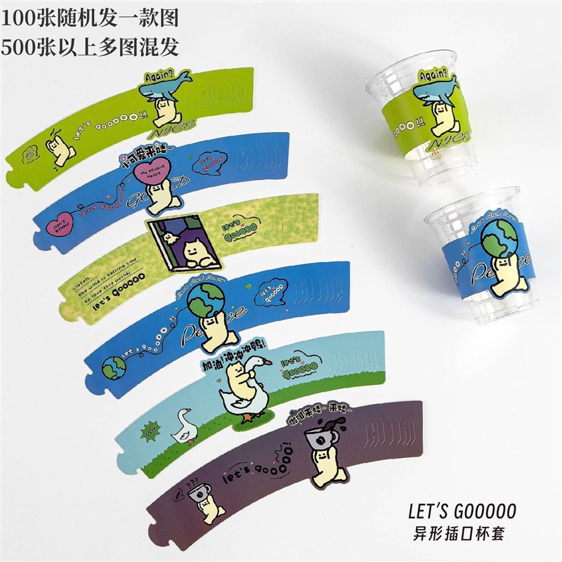 网红咖啡奶茶一次性多插口可调节杯套卡通异形防烫隔热外卖纸杯套