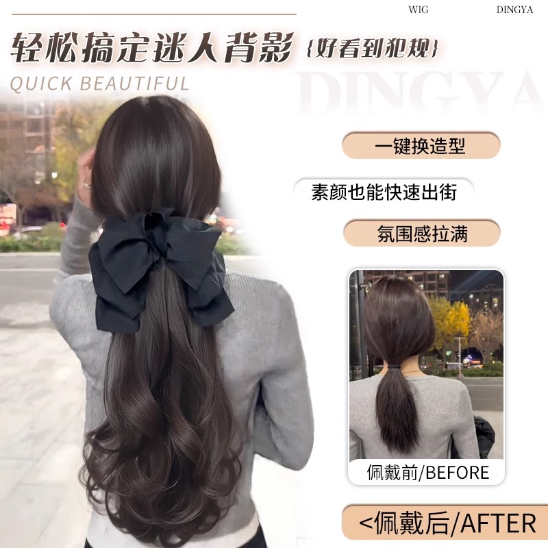 蝴蝶结假发马尾女抓夹大波浪长发自然仿真发可扎辫子蓬松卷发马尾