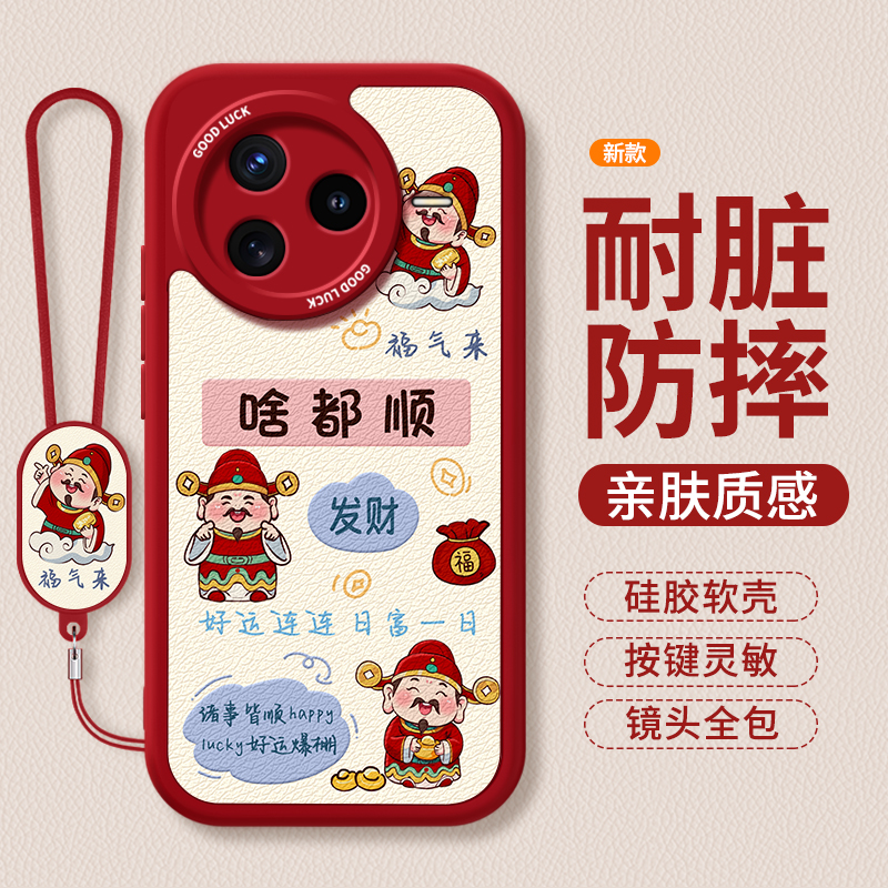 啥都顺适用红米K80手机壳RedmiK80Pro小羊皮保护套Redmi小米新款k8o镜头全包防摔男女财神爷硅胶看80Por外壳