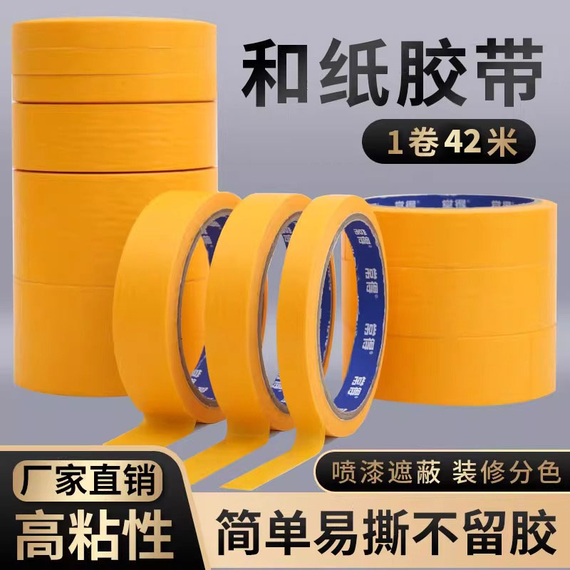 常得黄色胶带装修喷漆遮蔽用和纸胶带高粘易撕无痕批发美纹纸胶带