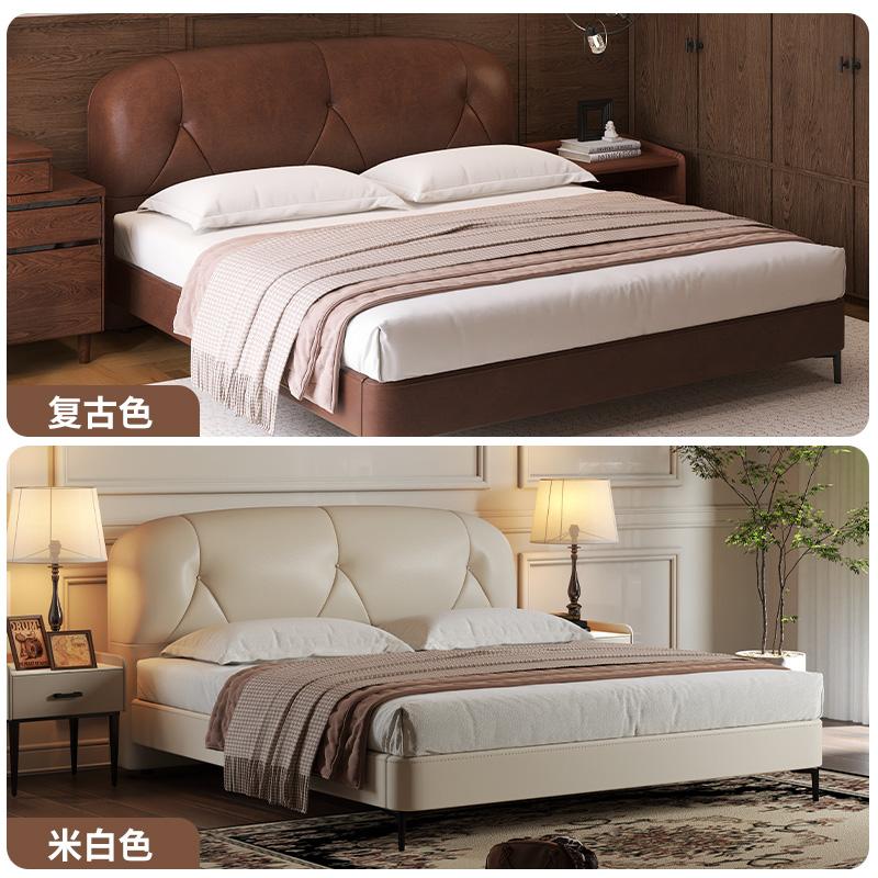慕思旗舰店床主卧中古风床实木现代简约真皮床复古风床卧室大床