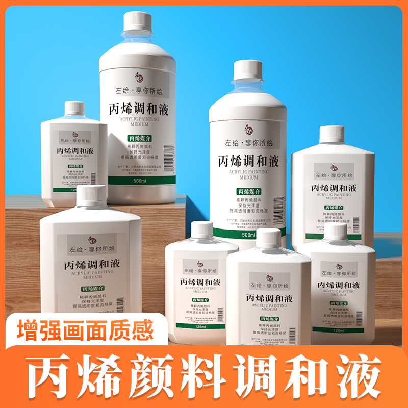 左绘丙烯颜料调和液稀释剂250ML美术用品媒介专用亮光透明保护漆亚光耐晒助剂液态流体绘画材料光泽手绘防水