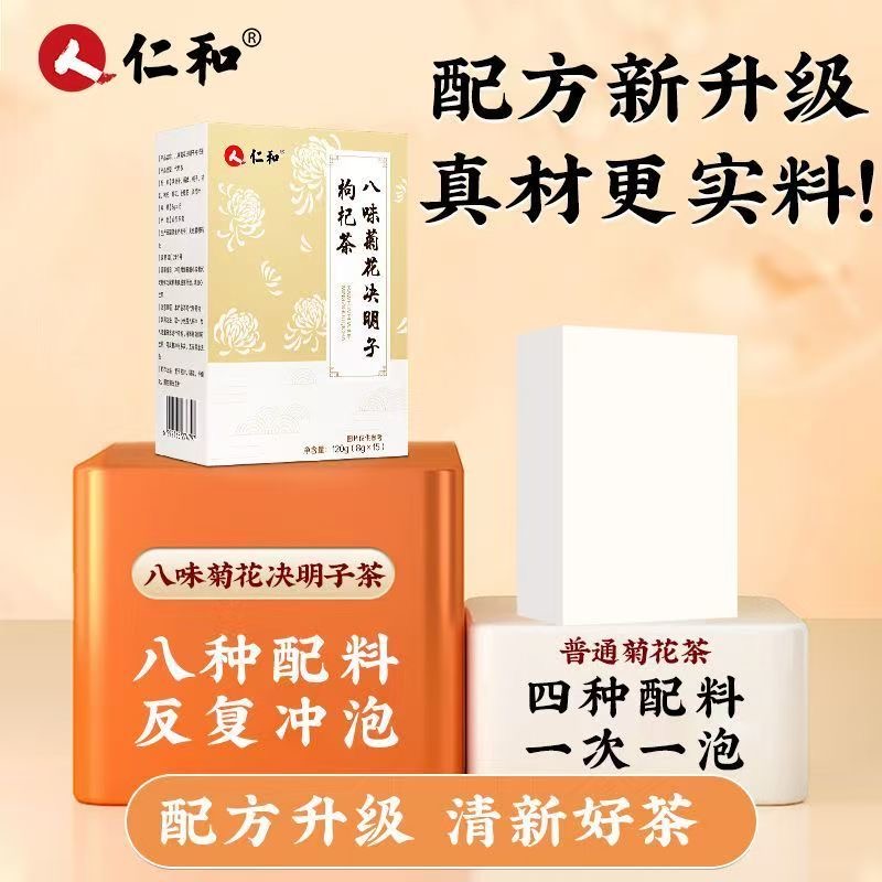 仁和八味菊花决明子枸杞茶金银花护栀子熬夜降火喝酒肝草本养生茶