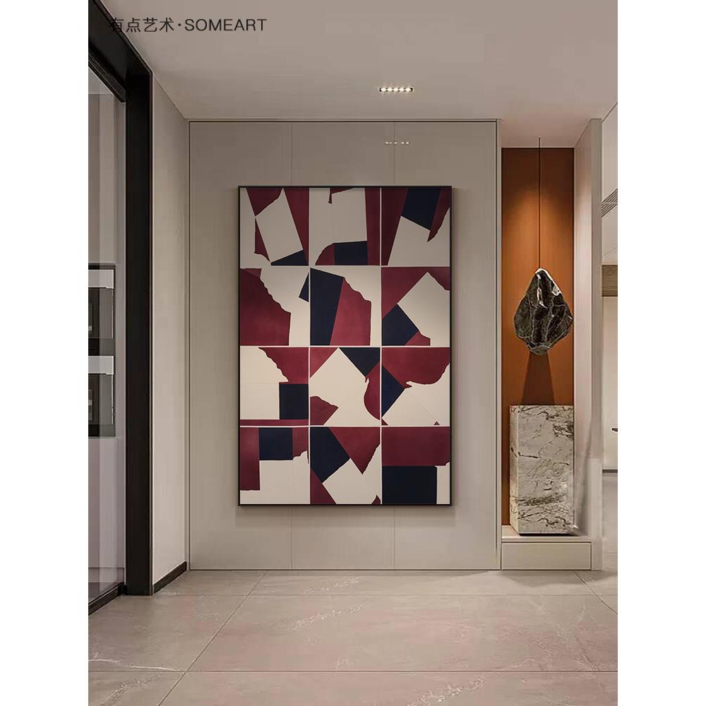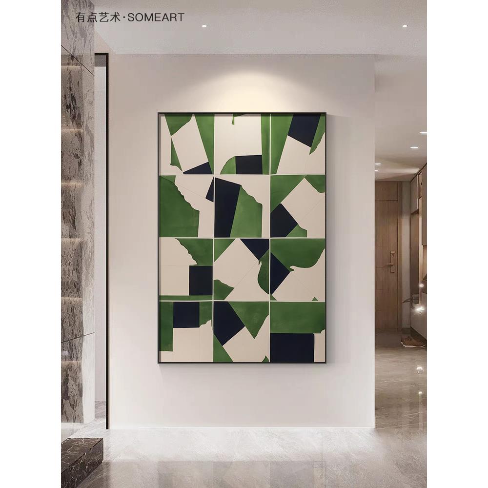 现代无障碍豪华客厅沙发背景墙装饰画抽象艺术餐厅壁画绿色入口走