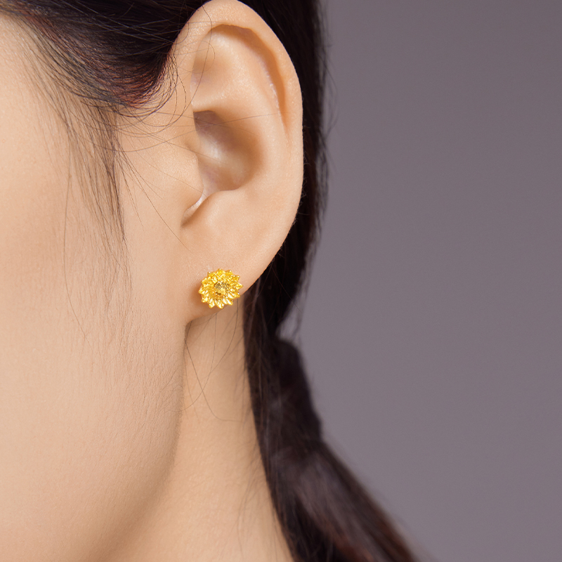 【中国黄金官方店】足金5G向日葵耳饰时尚简约气质首饰百搭新品