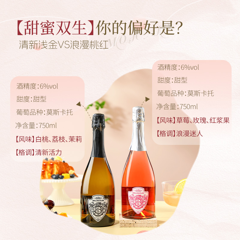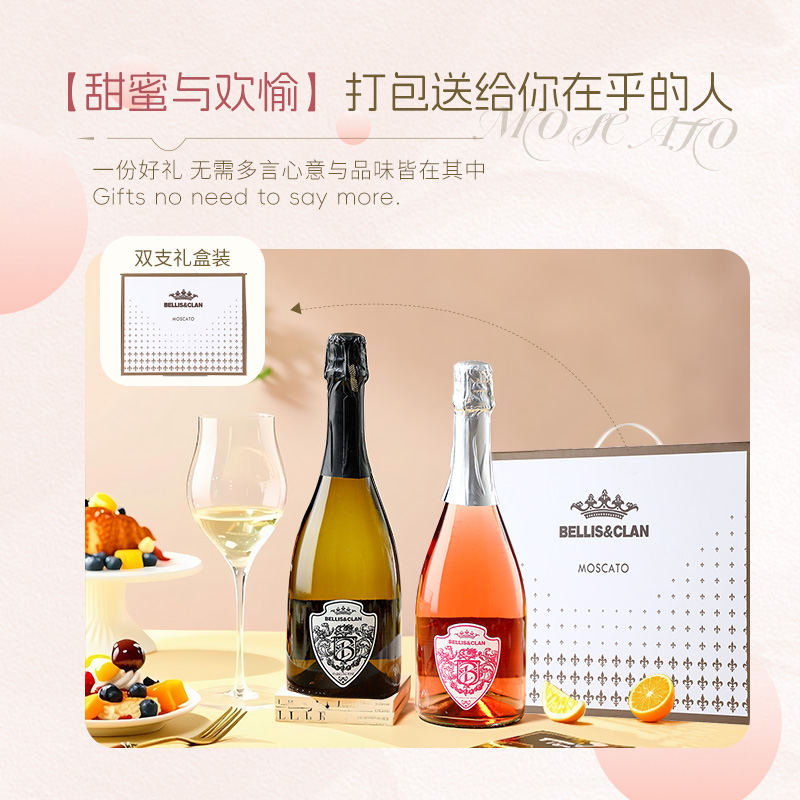 莫斯卡托甜白起泡酒桃红葡萄酒气泡酒女生微醺香槟杯果酒礼盒装