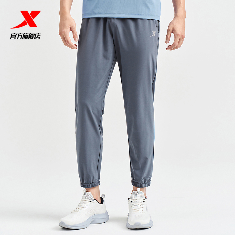 特步运动裤男士秋季薄款透气卫裤针织裤直筒裤子跑步通勤休闲长裤