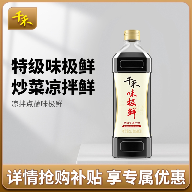 千禾味极鲜酱油生抽特级1L大瓶装酱油醋料酒调料厨房调味料组合