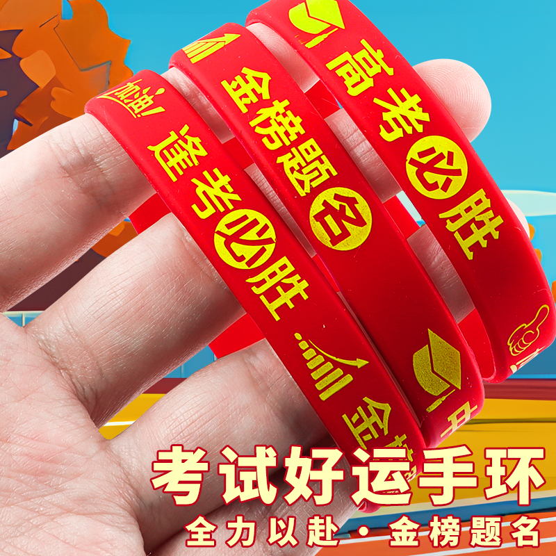 高考加油手环软硅胶逢考必过考试必胜腕带手上中考打气发带头巾送考金榜题名祝福好运手环手腕带绑带红色丝带