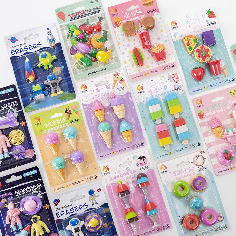 创意3D立体动物食物太空等造型奇趣橡皮擦套装学生奖品