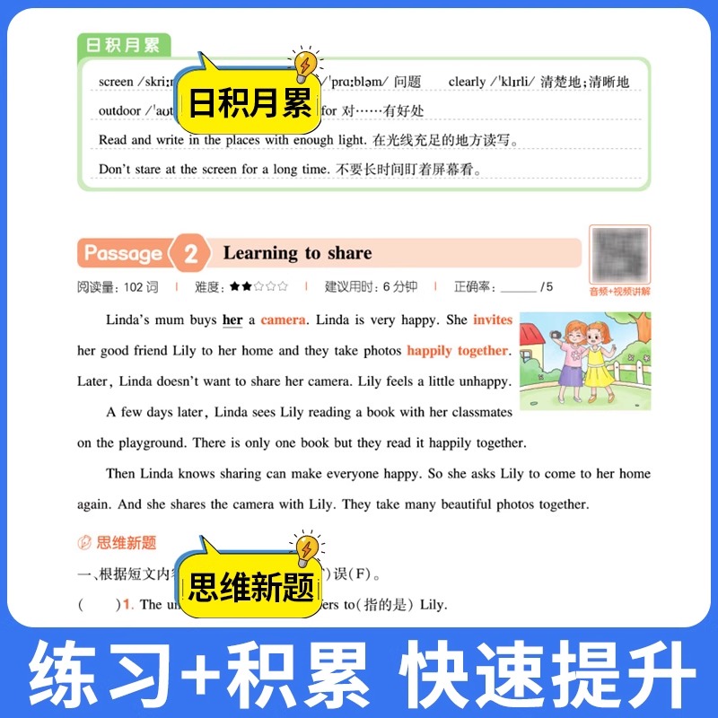 26一本英语听力阅读小学英语阅读听力训练100篇 三四五六年级英语听力阅读理解训练题一百篇3456年级英语同步阅读听力练习课外训练