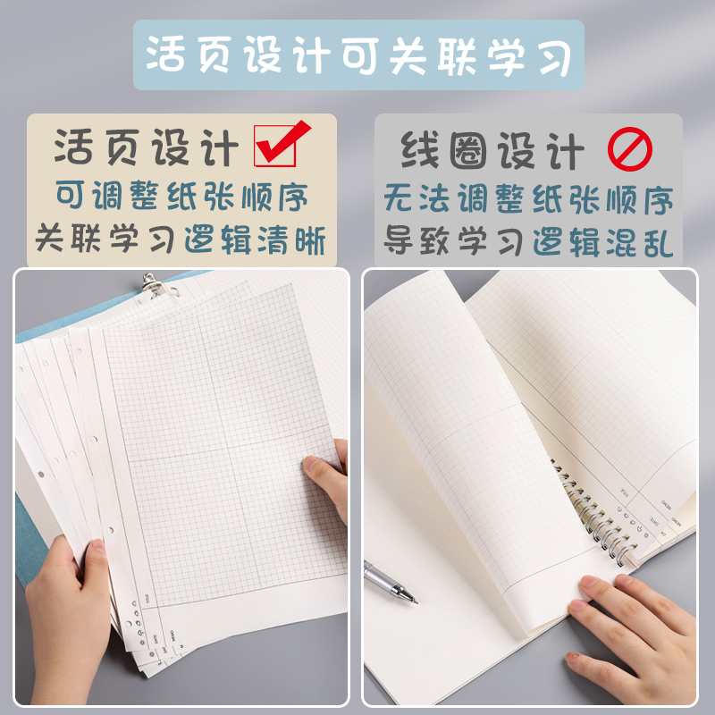 晨光活页本B5横线笔记本子A4方格网格记录本A5多规格可拆卸替芯软壳考研线圈错题本加厚纸张不咯手活页夹高中