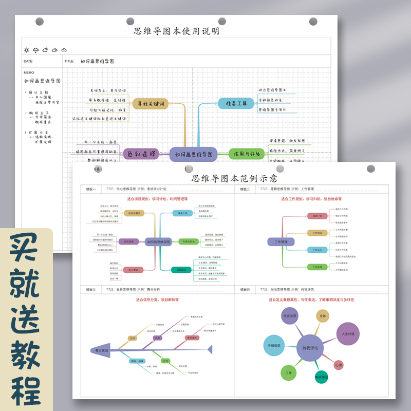 思维导图笔记本子a4活页带模板强迫症笔记本子做笔记神器横向康奈尔可拆卸大学生专用加厚大号方格本网格本