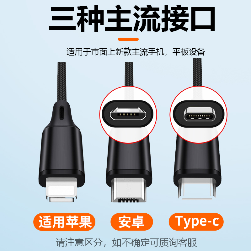 倍思数据线三合一充电线器一拖三快充三头适用多头车载苹果Typec充手机车超级车用汽车USB伸缩多功能多用电器