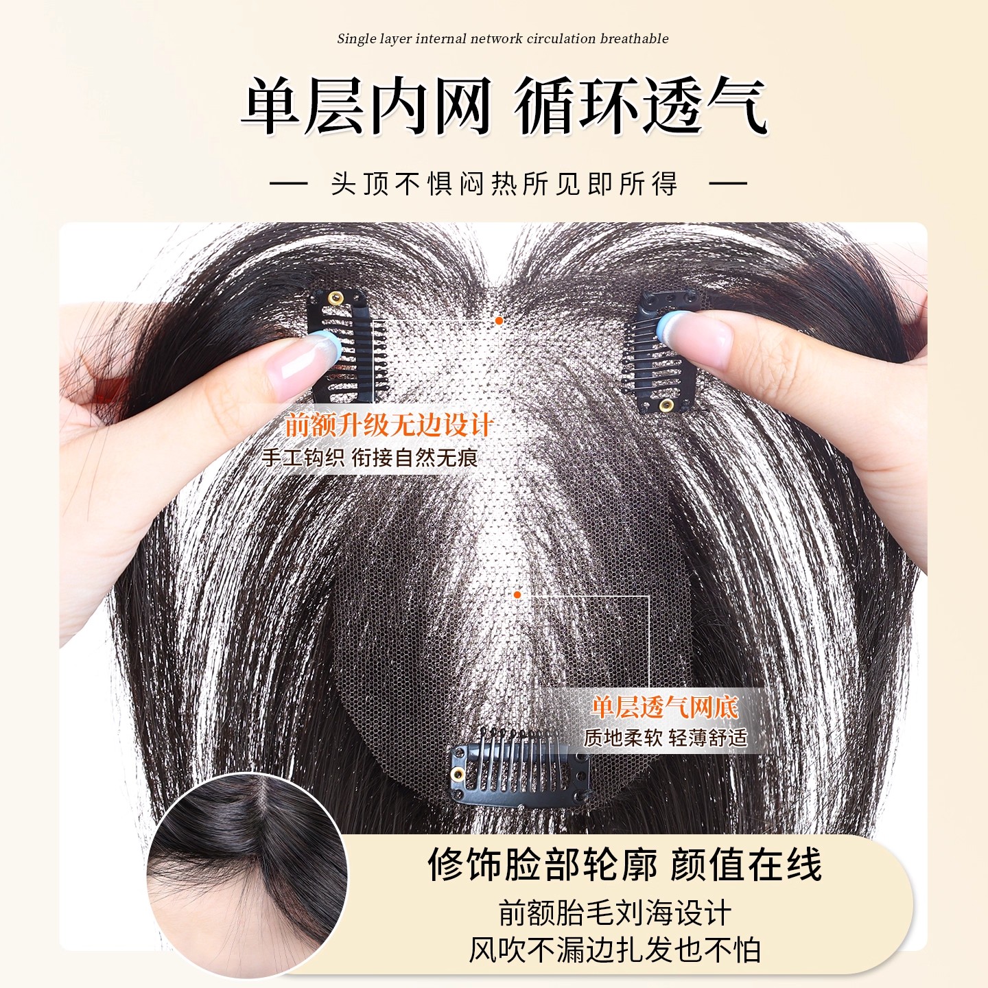 期桃假发女片头顶蓬松高颅顶遮白发增发量轻薄隐形真发无痕补发