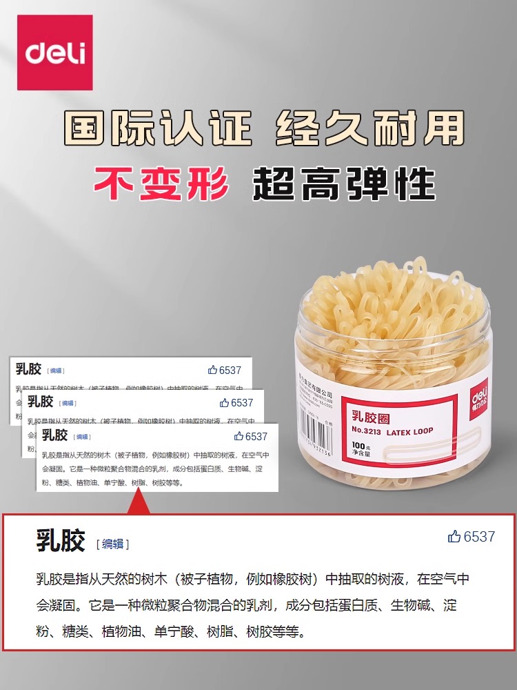 得力办公用品3211乳胶圈胶圈橡皮筋橡皮圈财务专用牛皮筋胶圈橡皮圈韧性强牢固耐用橡牛皮筋办公用品学习用品