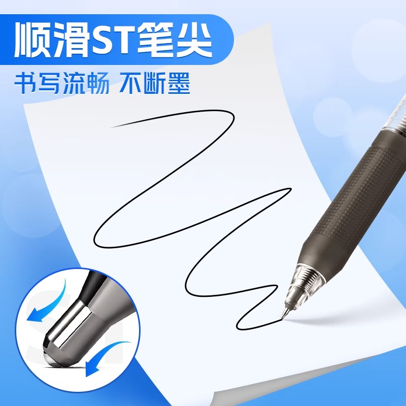 ST刷题笔高颜值按动中性笔圆珠笔黑色水笔小学生专用考试0.5速干碳素笔水性黑笔按压式做笔记签字笔非按斤卖