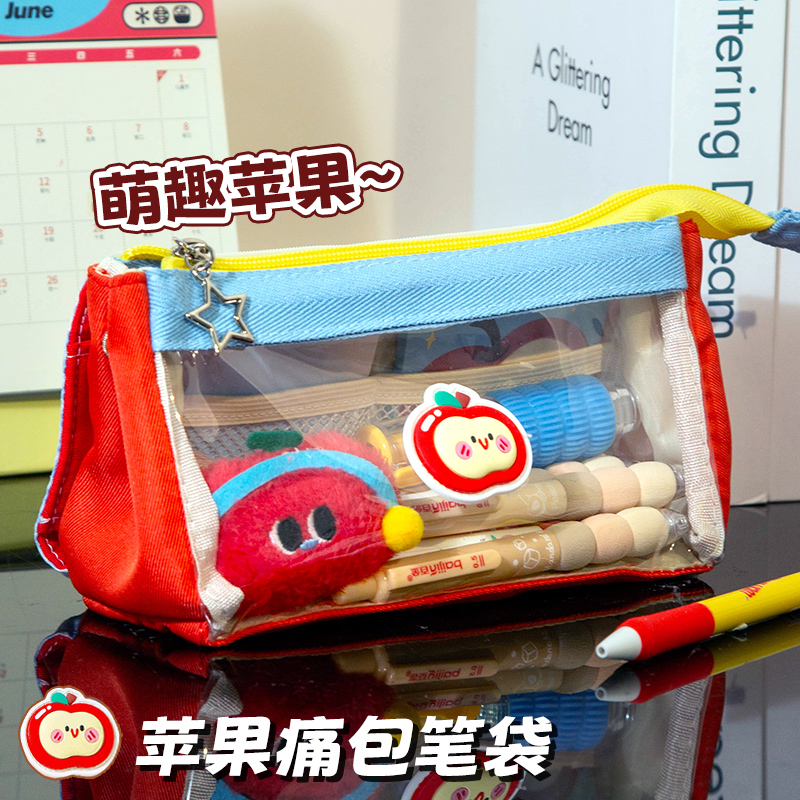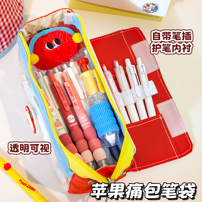 【真的不泛黄!】透明可视苹果笔袋高颜值ins风女孩款女生2025新款铅笔盒男孩小学生简约大容量超火文具盒